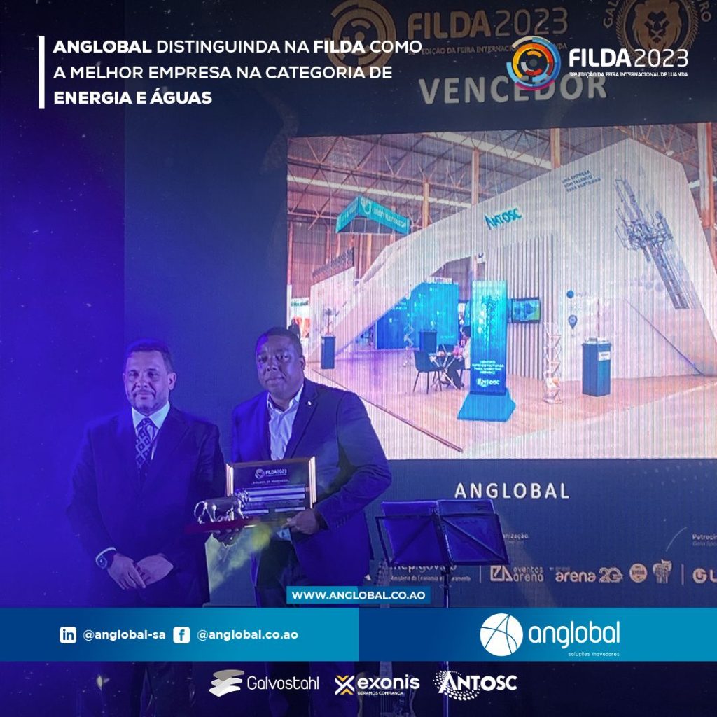 A Anglobal, que recebeu o Leão de Ouro FILDA 2023, na categoria Energia e Águas, focou a sua participação deste ano em três propostas fundamentais para a diversificação da economia e para o desenvolvimento sustentável, nomeadamente a Infra-estruturas de potencialização das energias renováveis, a partilha de telecomunicações e a indústria metalomecânica como a estrutura de base para os diversos projectos.